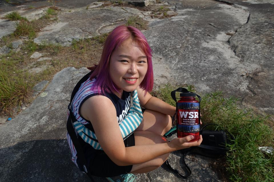 Is it possible that South Koreans received a memo to descend upon Stone Mountain in the last 24 hours? In less than a day, I not only met a family from Seoul (more soon) and Chang Hun the opera singer from Gwangju, but I also met an ebullient 21 year-old, Minjeong Kim, from the city of Pusan. In Korea she's actually 22, because there you're already age 1 when you're born. For the past 8 weeks, Minjeong, who's never been to the U.S. before (or Stone Mountain), has been secluded in the woods at the Robert W. Woodruff Scout Reservation in Blairsville, GA, where she is the International Camp Staff Coordinator (she proudly sports her camp water bottle) representing the KSA, Korea Scout Association. She's been sharing her country's history and culture with other camp members from around the world. Before talking with her, I never really thought much about scouts being in other countries. It's humbling and refreshing to test my own latent ethnocentricity when learning about other cultures.