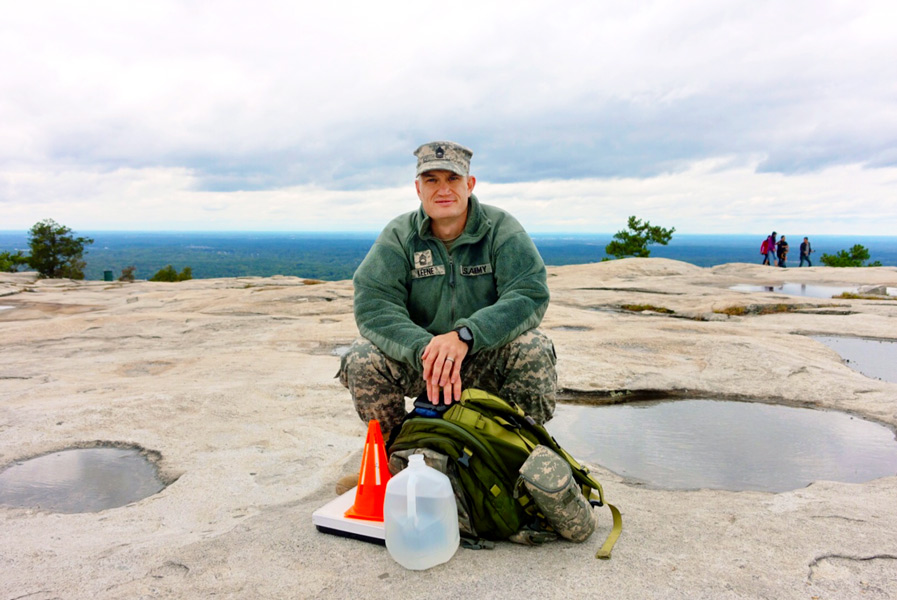 It was unseasonably cold when I saw Master Sergeant Andrew Keene of the Georgia Army National Guard crouched like the host of "The Amazing Race" at the very center of Stone Mountain. An orange pylon marked the finish line for the NCOs (non-commissioned officers) in his charge that were hiking a course over the mountain with heavy packs that morning as they competed for NCO of the Year. He couldn't help but approve of my camouflage Converse high tops, the very ones I got at Buffalo Exchange for $13, and short of shouting "look at my shoes! look at my shoes!" to every NCO I passed on my way down, I settled for being pleased that footwear could induce such a sense of solidarity.