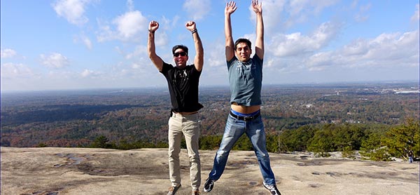 Mehran, 29, and Zuhaib, 30, are cousins from Kashmir, currently studying computer science at New York Tech, and they have been in the U.S. for eight years. Stone Mountain was on their list of sights to see on their road trip through the Great Smoky Mountains, Georgia, New Orleans, Austin, and Houston. “But you have the Himalayas,” I said, as if questioning what could they want with a mere foothill like Stone Mountain.