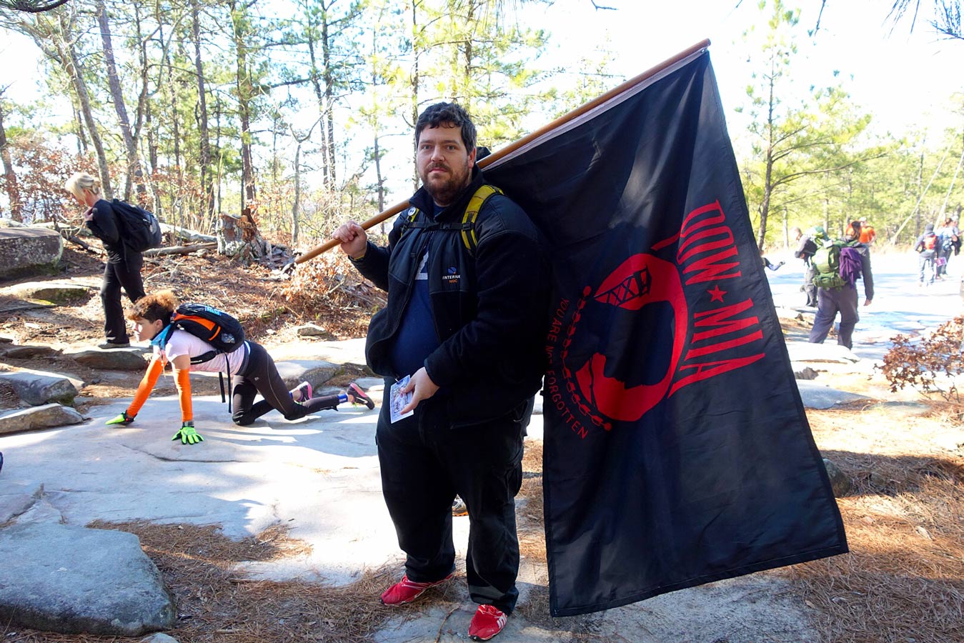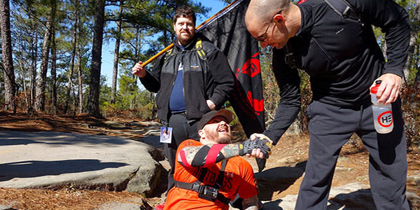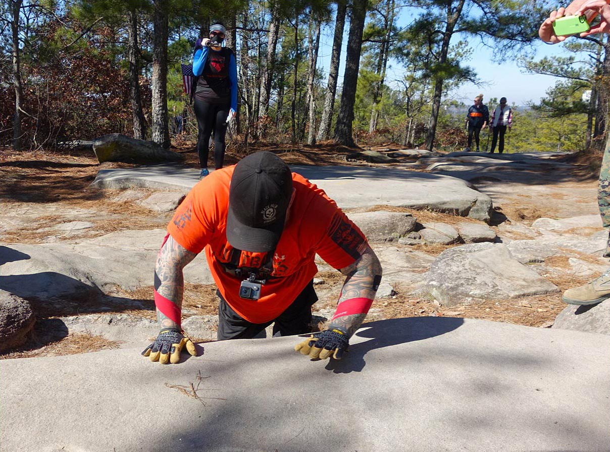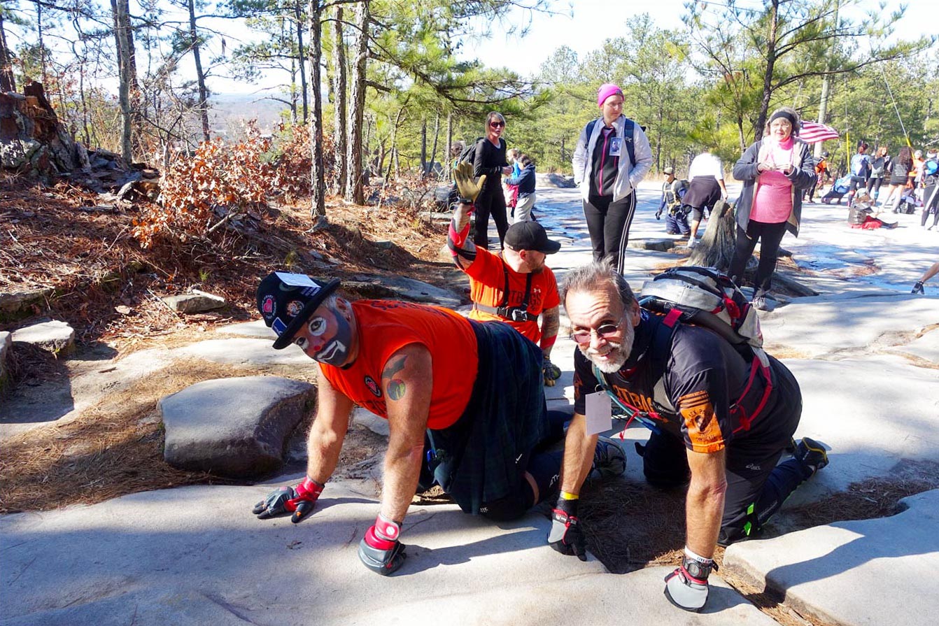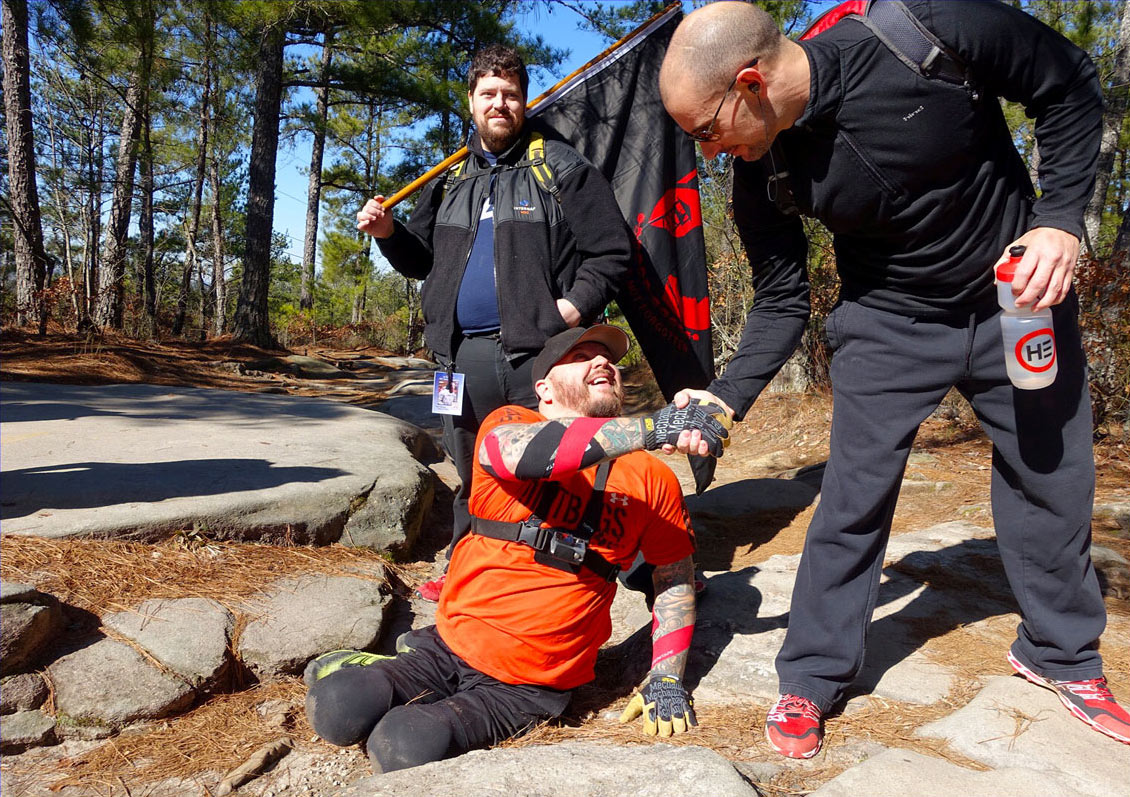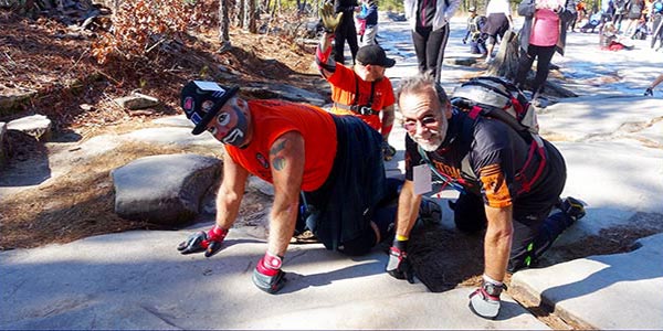 "Don't make us look bad, now!’ I razzed Michael Mills, 39, as he literally crawled up Stone Mountain today for the third year in a row. His supporters, unofficially known as Team GORMR (Georgia Obstacle Race and Mud Runners), climbed on their hands and knees alongside him. The married father of three is a T12 paraplegic who suffered permanent paralysis in his legs at age 16 after a tragic car accident with a drunk driver in 1993. But Mills, who lives in Covington, GA, never let that stop him from participating in the sports he loved and absolutely believes anything is possible. In fact, he became the first paraplegic to ever compete in a Spartan race in 2013, among other impressive achievements. You can follow him on Facebook at Chasing Michael Mills