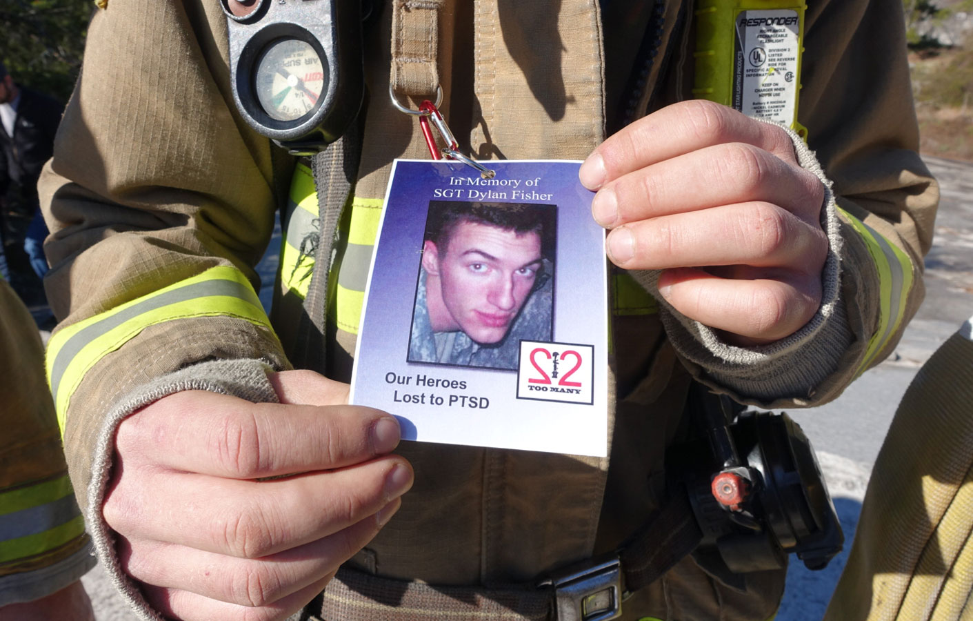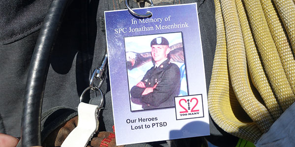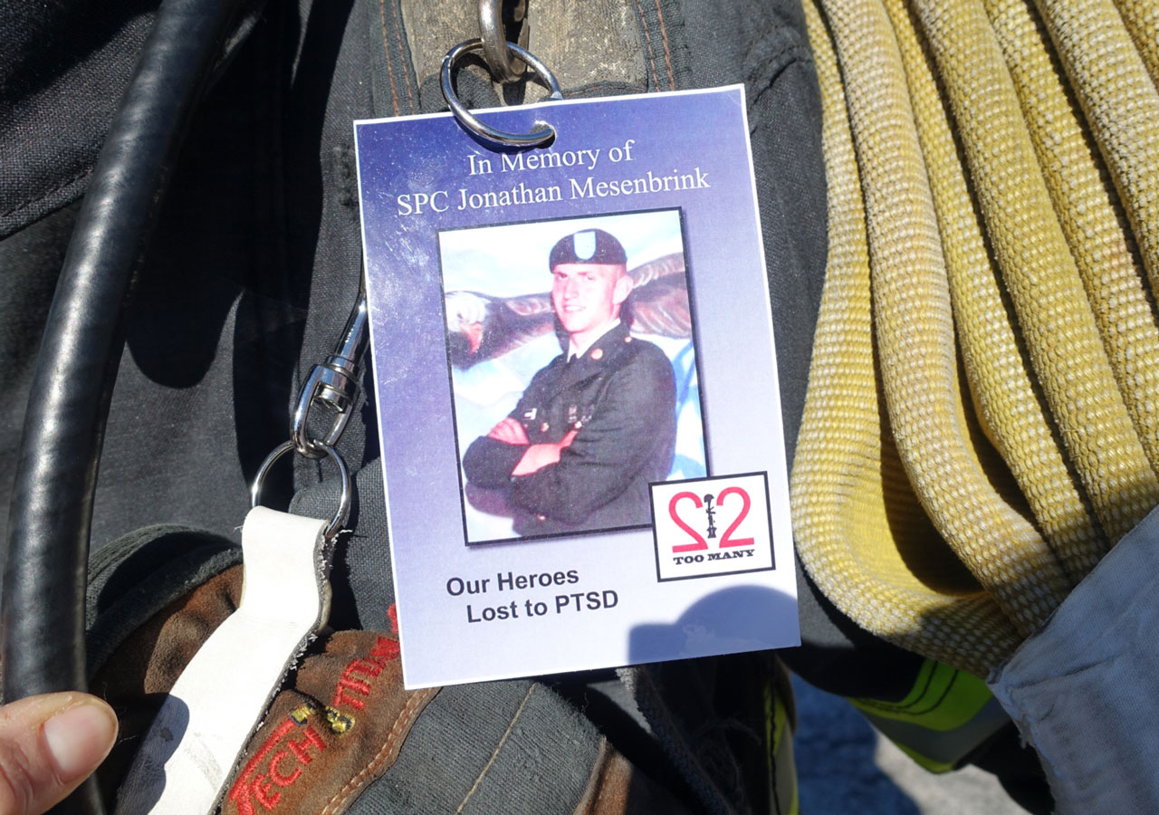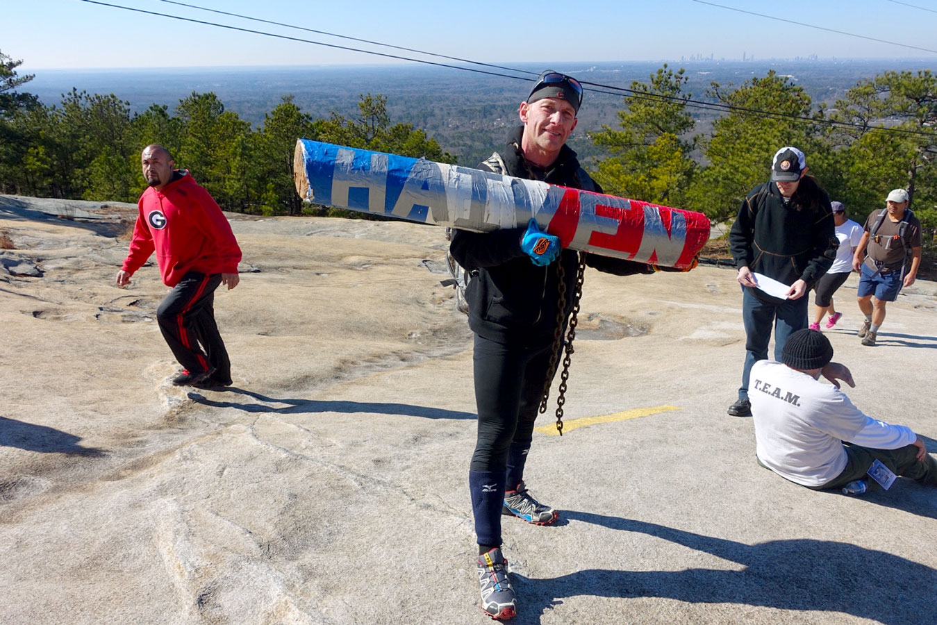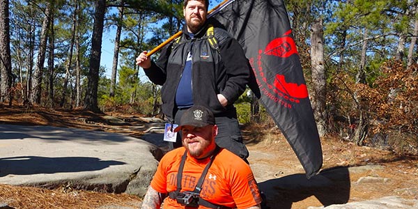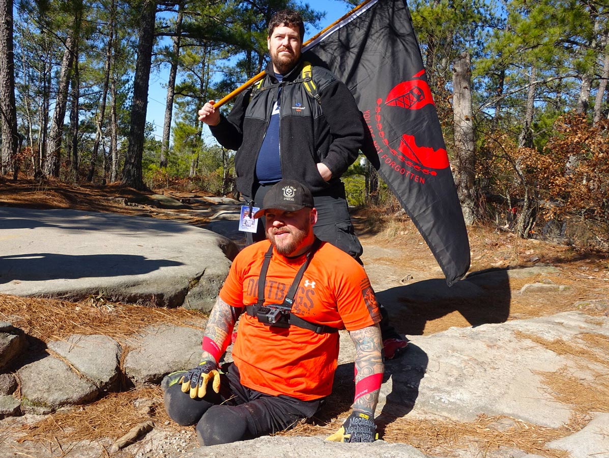 Mills and Team GORMR were out training for the Spartan, of course, but they were also out raising money and awareness for a handful of causes such as Bert's Big Adventure, the military suicide rate, and three year-old Haiven, Mills' niece who suffers from Tay-Sachs. The group began from the base of the mountain at around 9:30am and finished just after sunset (Mills rode his special off-road wheelchair down, while others crawled or walked down after reaching the top), and those who weren't on their hands and knees alongside Mills carried some sort of heavy burden in their arms, in their rucks, or on their backs and shoulders. One guy had about 150lbs strapped to his body. In between bursts of filming Mills, I managed to get some inspiring images of "the things they carried."