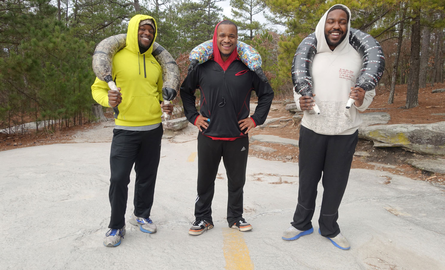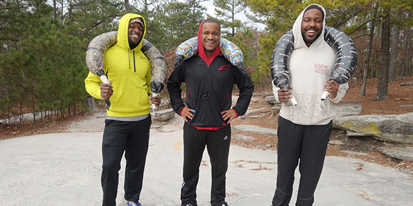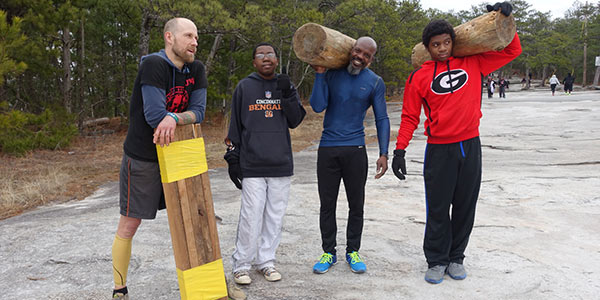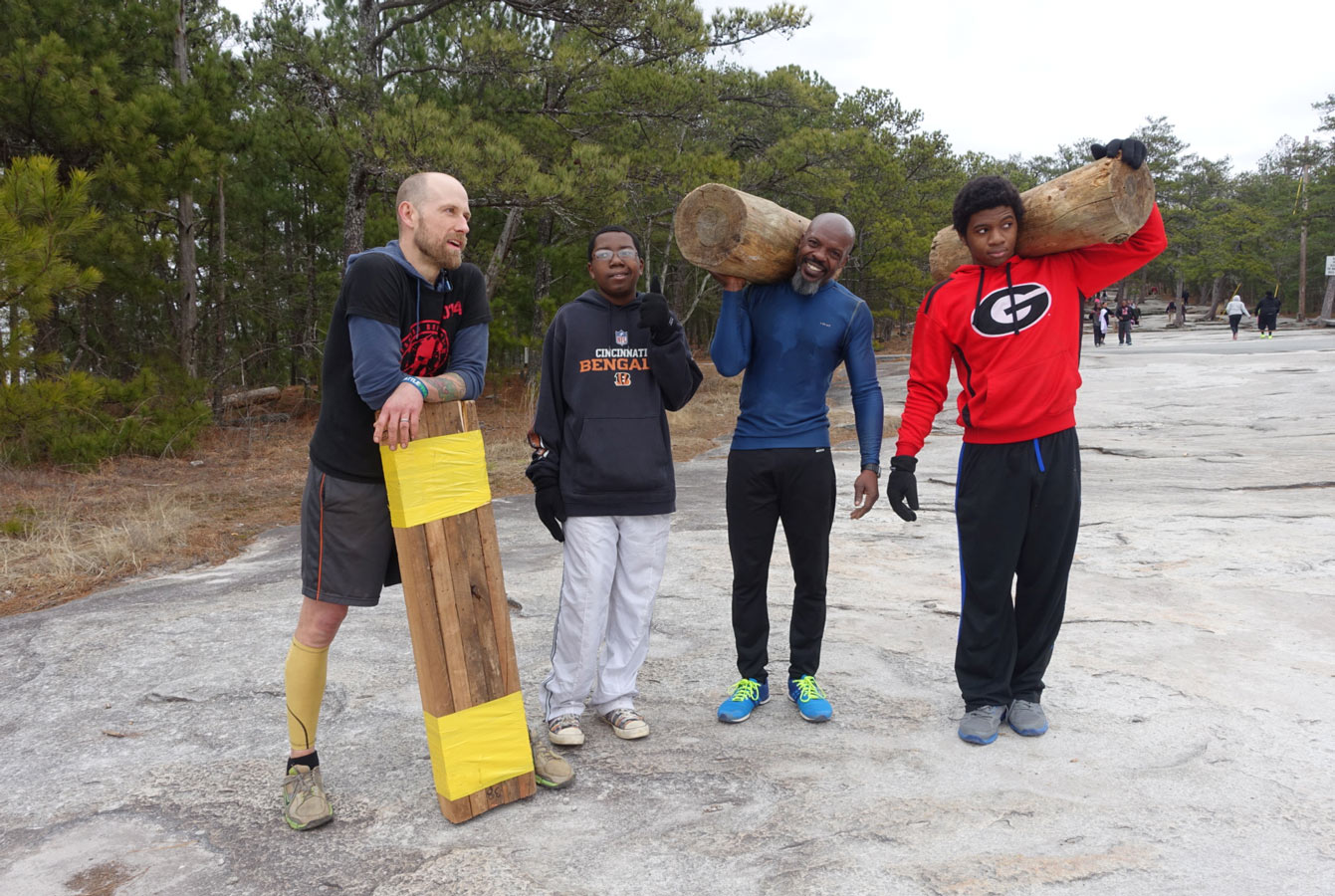 Below are some images of others training for the Spartan from the week before on February 1st. Pictured: Craig Brown, 32, Duane Forest, 46, Tariq, 13, Kamryn, 17, and holding the Bulagarin bags, Boniface, 25, Brandon, 25, and John, 27.