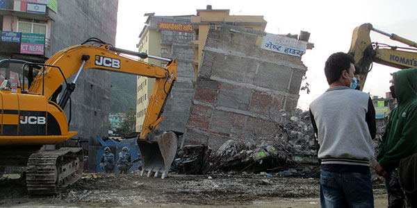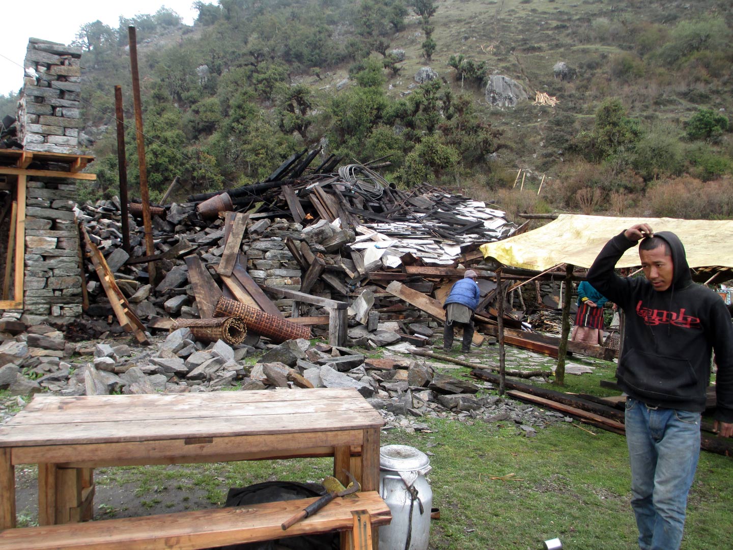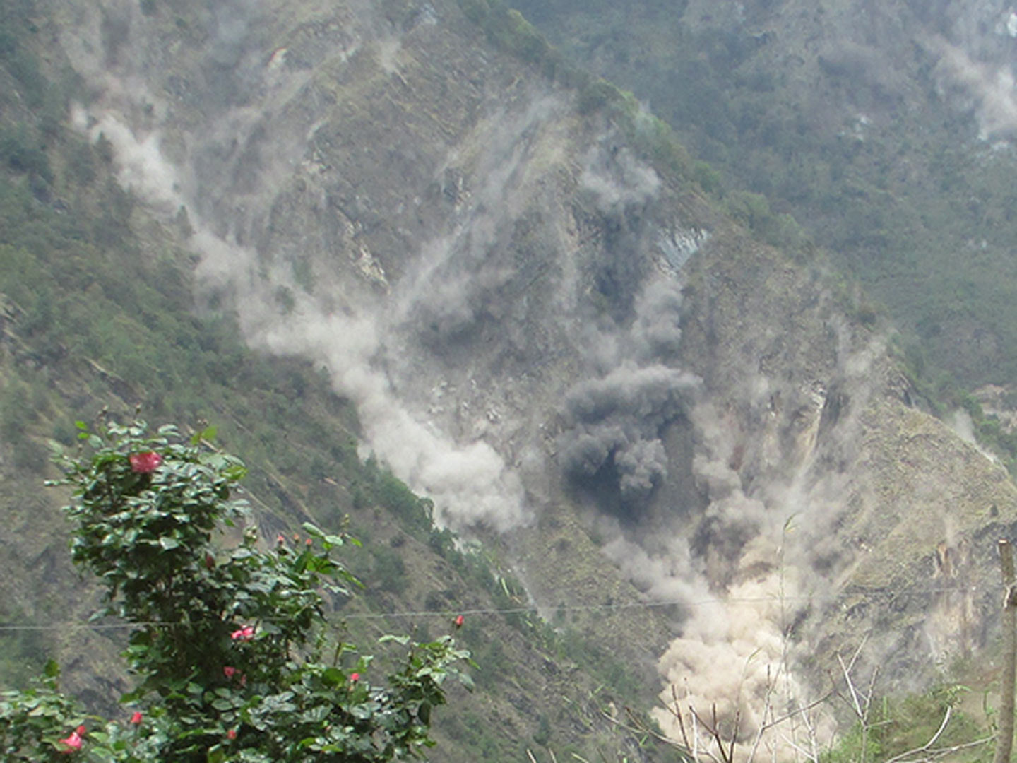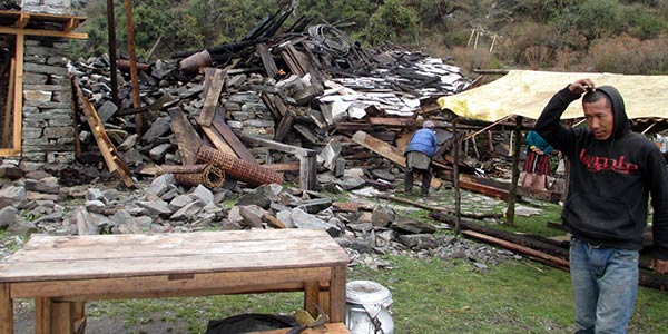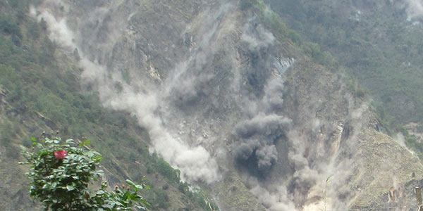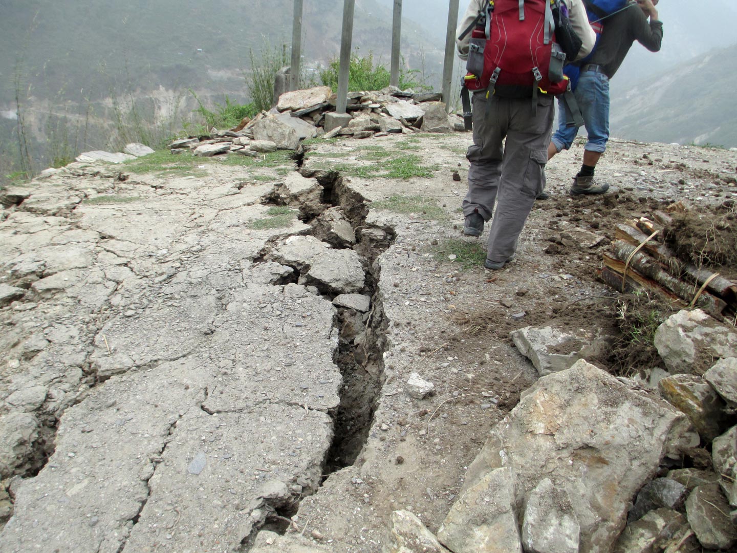At first Marty didn’t know the scale of what was happening at the time. “I didn’t even know I was missing,” he famously joked later. In fact, as if on autopilot, Marty captured several photos of what he now holds to be the very first moments of the earthquake with his point-and-shoot camera. “I didn’t even know some of these photos were on the camera,” he said. He first saw what looked like a landslide roaring down the mountainside and then almost simultaneously noticed huge cracks in the terrace where he was staying. Later he and his group crossed a treacherous suspension bridge that had been heavily impacted by avalanches of rocks, and he cites this as the scariest part of his exodus out of natural disaster. "There were two deaths in the initial slide, an uncle and nephew who were unfortunate enough to be down by the river," he recalls. Other less fortunate stories and images haunt him. Such as the image of funeral pyre and the tale a couple that survived a boulder crushing their car, but later one of them was killed by another falling rock.