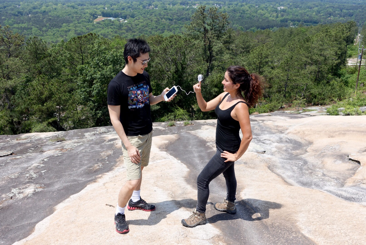 Fast forward to meeting him today at the mountain, where he demonstrated a Smartphone pulse iOximeter that he and his team at SafeHeart created, primarily inspired by “the deterioration in health of [Yale’s] father as he struggled with high blood pressure and other ailments.” He placed the plastic end of the device on my index finger (I felt like E.T.!), and that connected to the audio jack on his phone and communicated with a downloadable app to measure my oxygen saturation and heart rate (98 and 114, respectively, after hiking halfway up the mountain, if you’re curious).